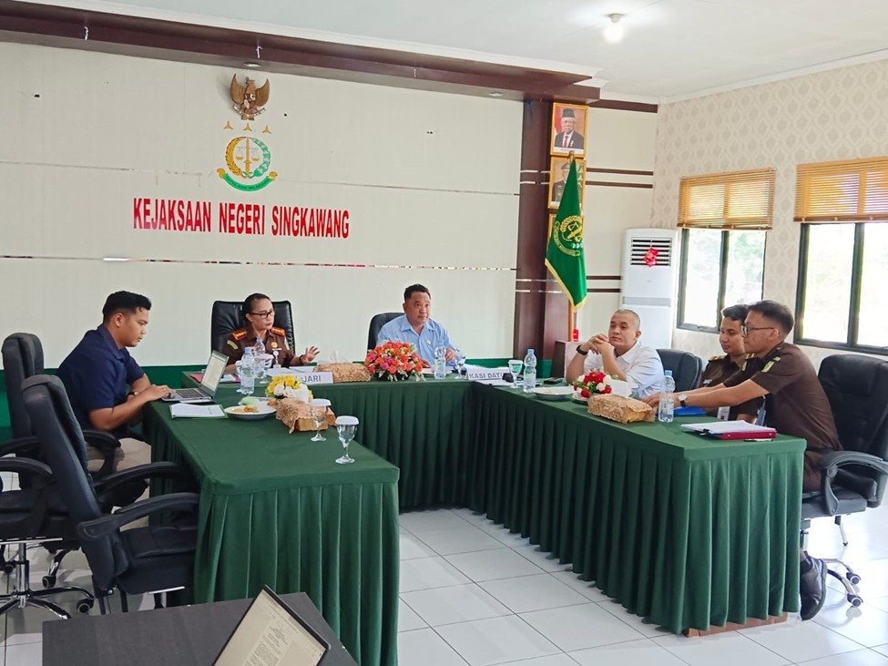 Kepala Kejaksaan Negeri Singkawang Nur Handayani memimpin rapat terkait pengajuan gugatan sederhana perusahaanenunggak iuran BPJS Ketenagakerjaan (BPJamsostek) pada Selasa, 13 Agustus 2024.