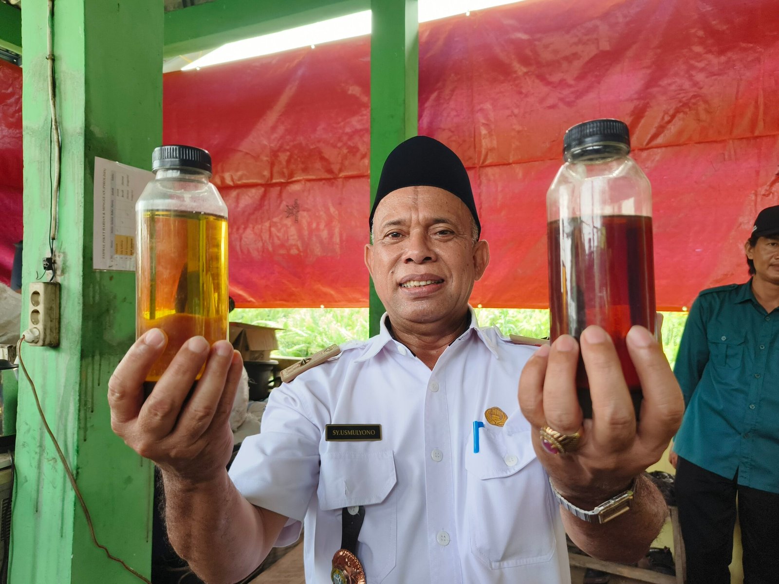 Kepala DLH Pontianak menunjukkan BBM setera solar dan petralite dari hasil olah sampah plastik