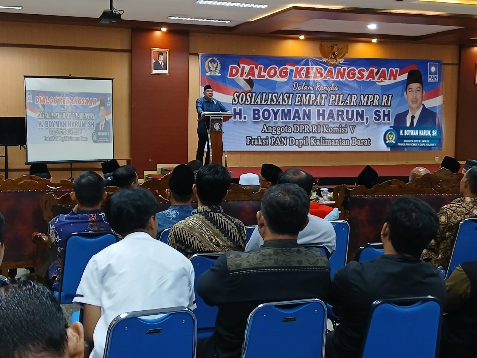 Sebagai narasumber, Boyman Harun yang juga Ketua DPW PAN Kalbar, menyampaikan bahwa dalam menghadapi dinamika global dan tantangan internal bangsa, konsensus kebangsaan yang tertuang dalam Empat Pilar—Pancasila, UUD 1945, NKRI, dan Bhinneka Tunggal Ika—tidak boleh goyah. Ia menegaskan bahwa pilar-pilar ini berfungsi sebagai sistem pertahanan ideologis yang mencegah disintegrasi bangsa.