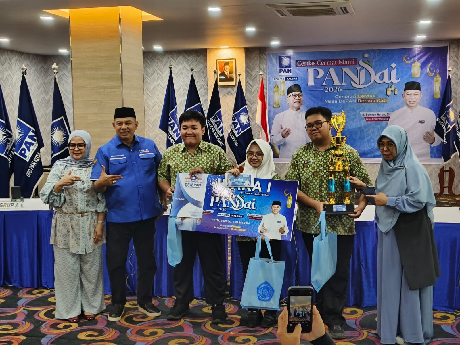 Pontianak (EK)– Tim Cerdas Cermat Islami dari SMA Muhammadiyah 1 Pontianak berhasil mencatatkan prestasi gemilang. Dalam ajang Pandai (Cerdas Cermat Islami) 2026 yang digelar DPW PAN Kalbar, mereka sukses mengalahkan 11 sekolah lainnya dan berhak membawa pulang piala serta uang pembinaan, Kamis (5/3/2026).
